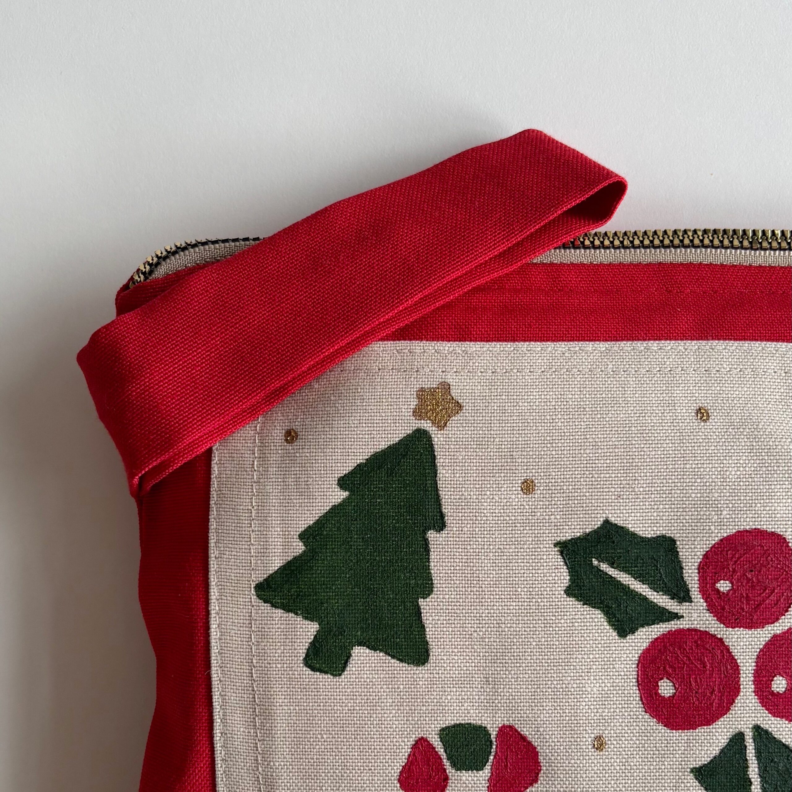 Tasarım: Geleneksel el işçiliğinin zarafeti, modern ve renkli yılbaşı desenleriyle buluşuyor. Kumaş boyasıyla yapılan özel baskı tekniği sayesinde her parça özgün bir doku ve karakter kazanıyor.
