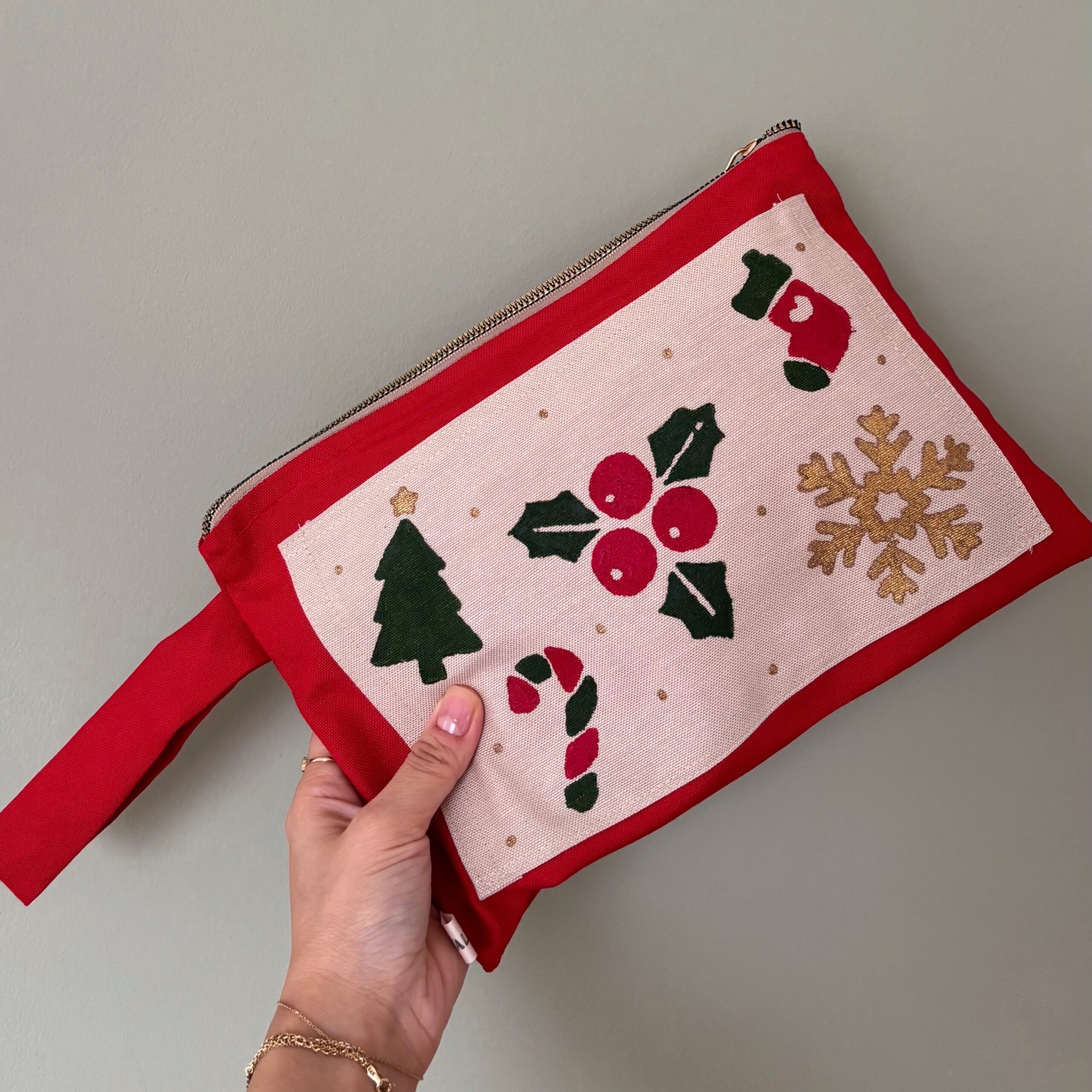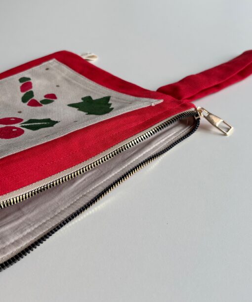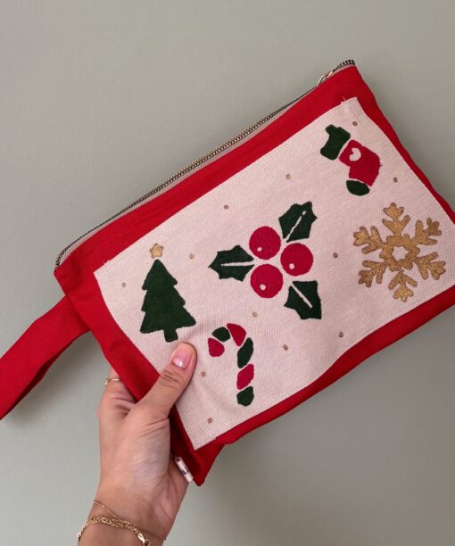 Festive Clutch, her kombine canlı bir dokunuş eklerken kompakt boyutuyla gün boyu pratik kullanım sağlar. Üzerindeki renkli yılbaşı desenleriyle enerjik ve dikkat çekici bir görünüm sunar. Pamuklu kumaştan üretilmiş, fermuarlı ve astarlı bu çanta, bileğe takılabilen askısı sayesinde hem şık hem de kullanışlıdır.