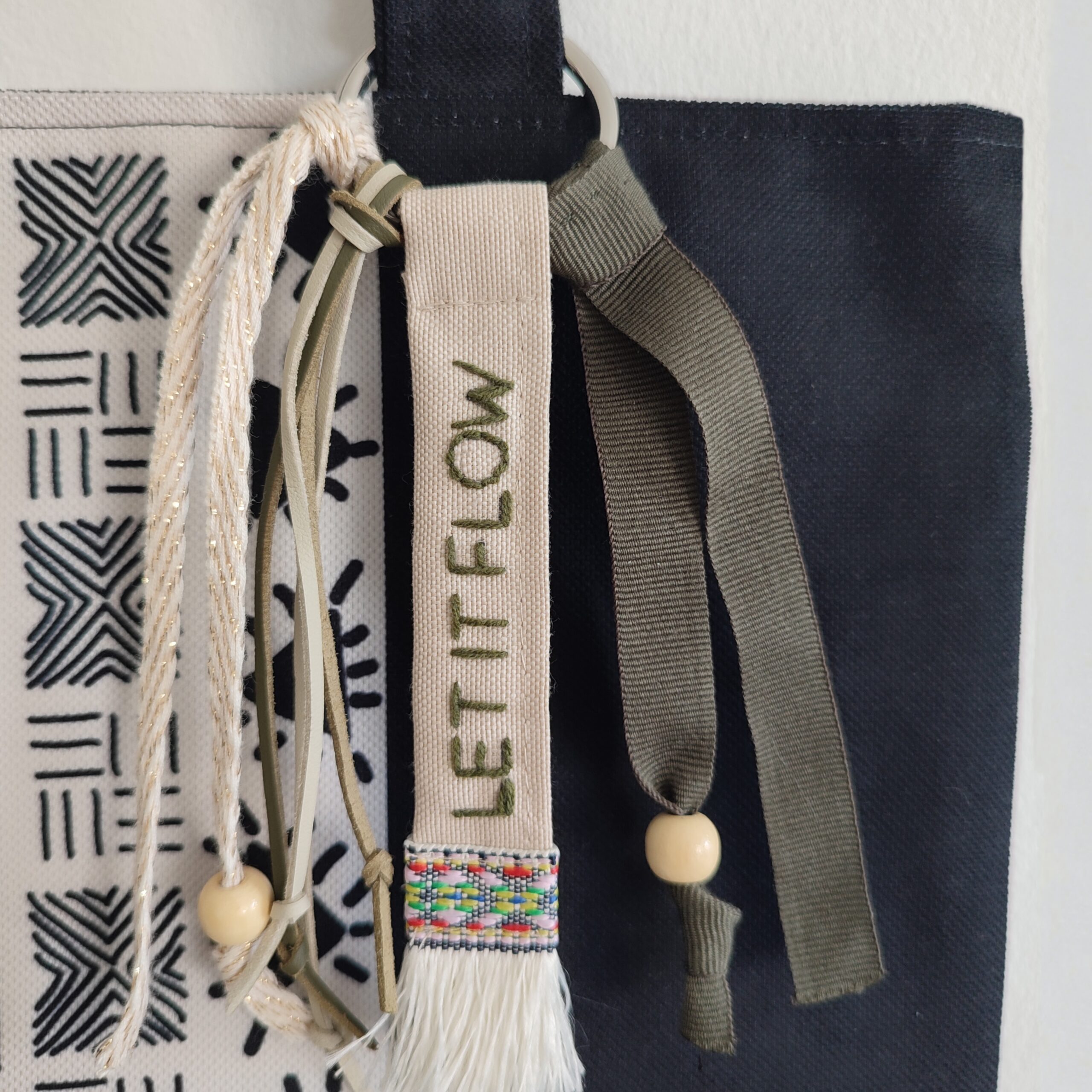 “Let It Flow” mesajlı bu özel tasarım bag charm, akışta kalmayı ve olanı olduğu gibi kabul etmeyi hatırlatır. Çantana, anahtarlığına ya da hediye paketine özgür bir hava katmak istersen bu parça tam sana göre.