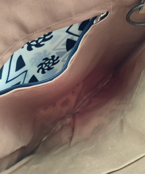 Malzeme: Geri dönüştürülmüş, vegan, su itici ve yüksek gramajlı özel kumaş. Astar dahil tüm bölümlerinde aynı kumaş kullanılmıştır.