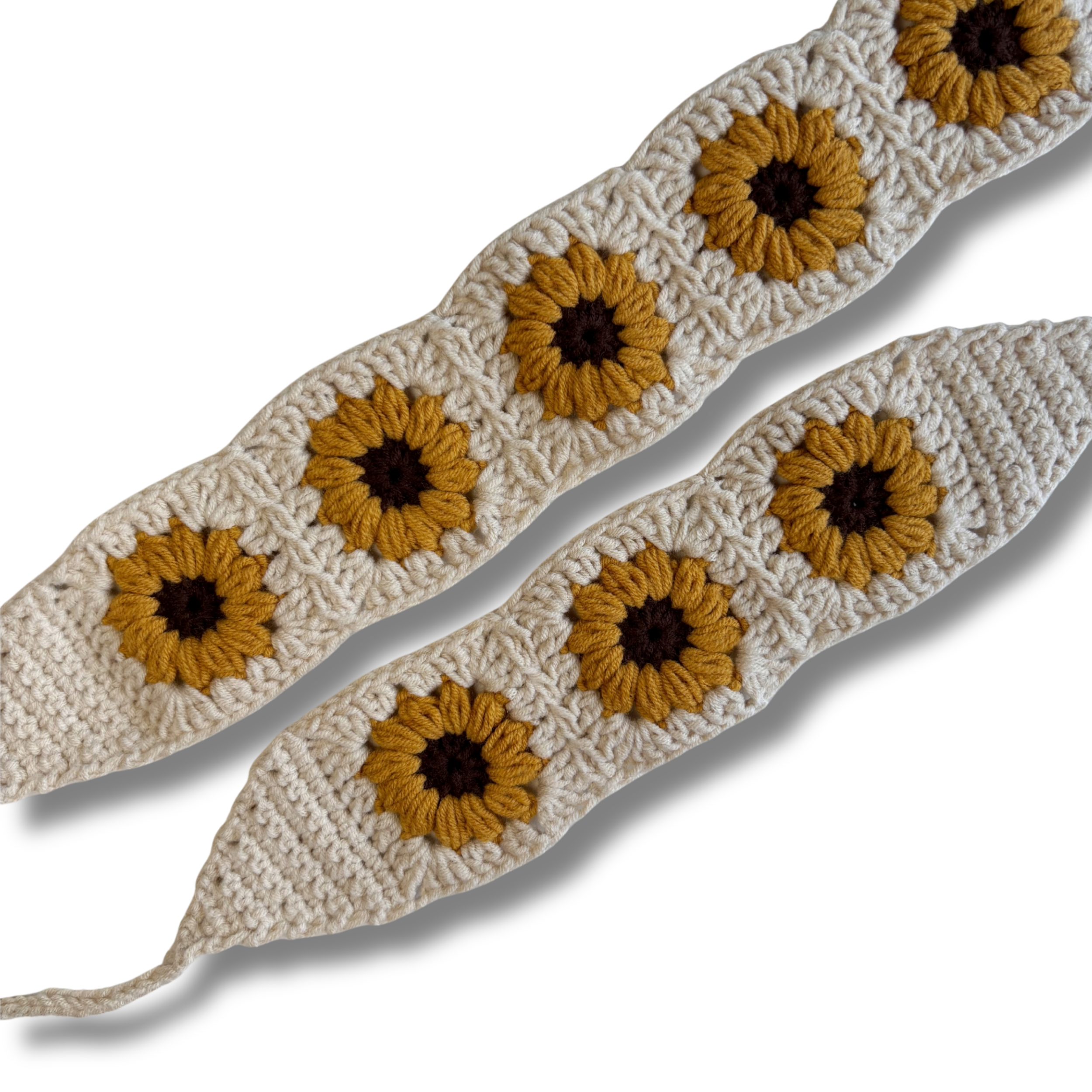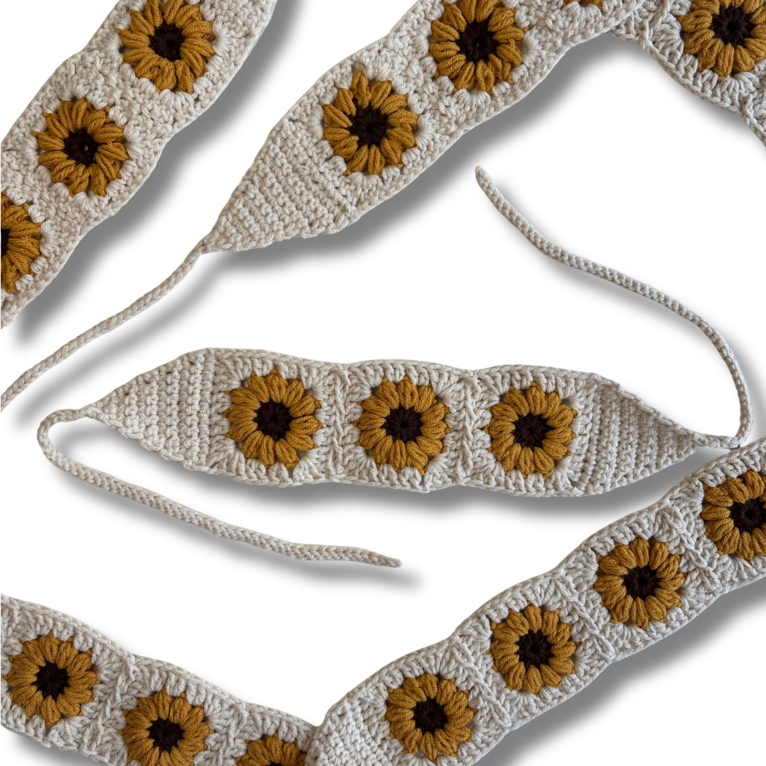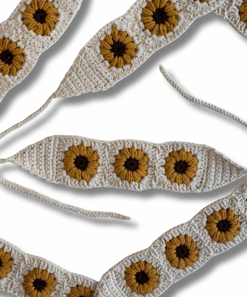 El örgüsü tekniğiyle hazırlanan Sunflower Soul Bandana, çiçeklerin neşesini ve yazın hafif enerjisini stiline taşımak için tasarlandı. Krem zemin üzerine işlenen çiçek motifleri, doğanın sıcaklığını ve ışığa yönelmenin sembolünü temsil eder.