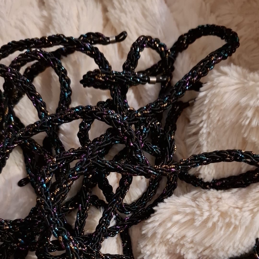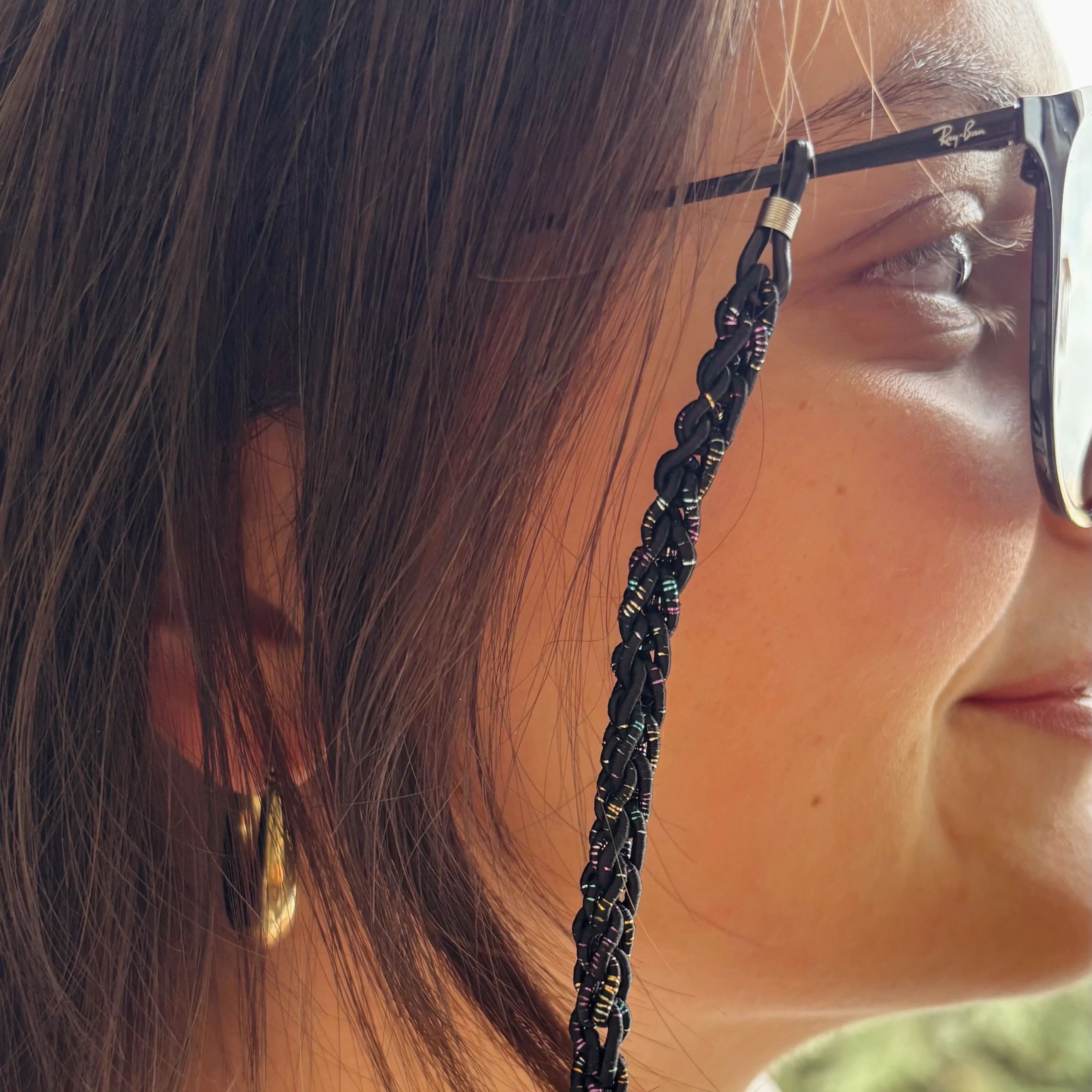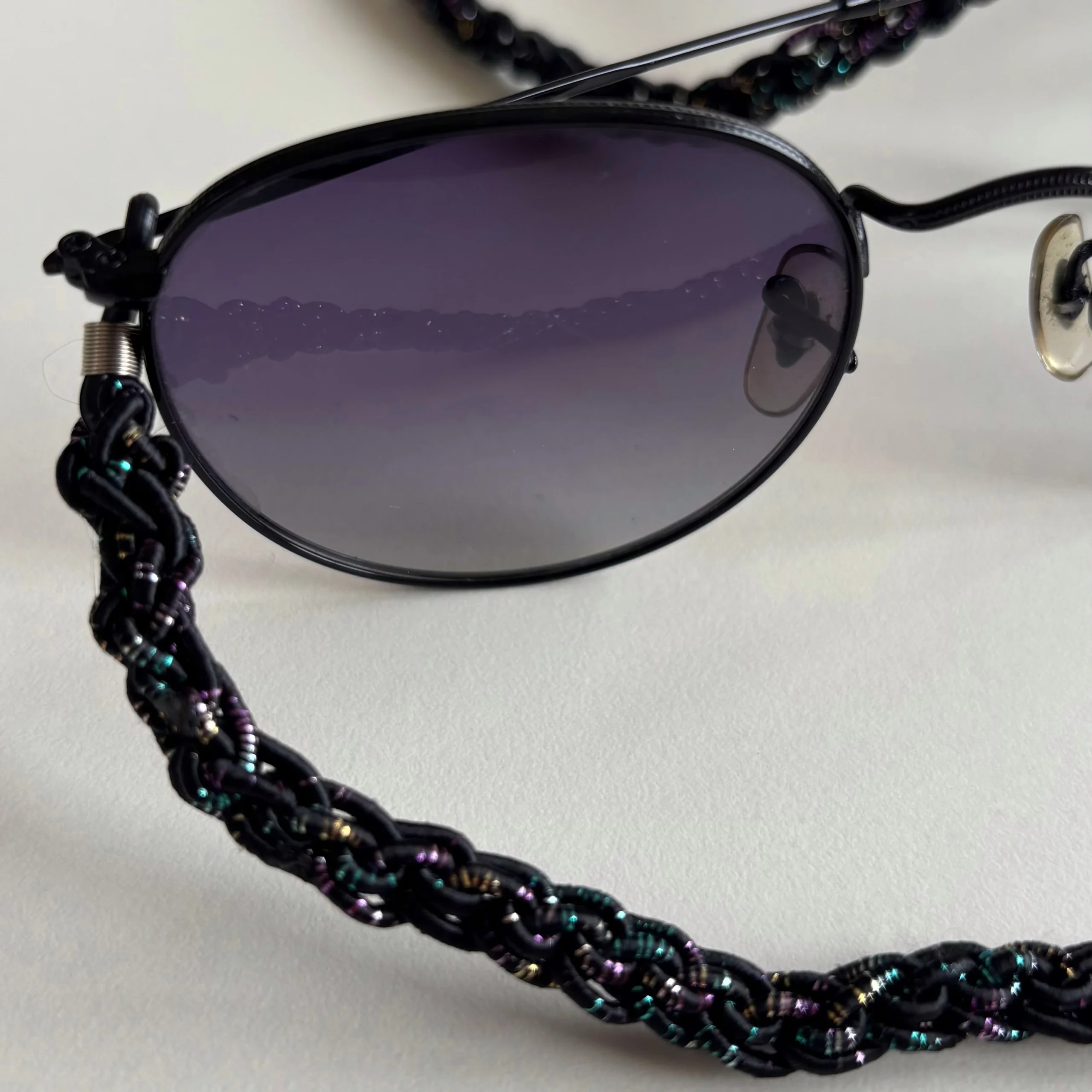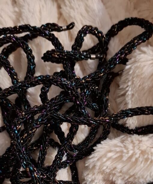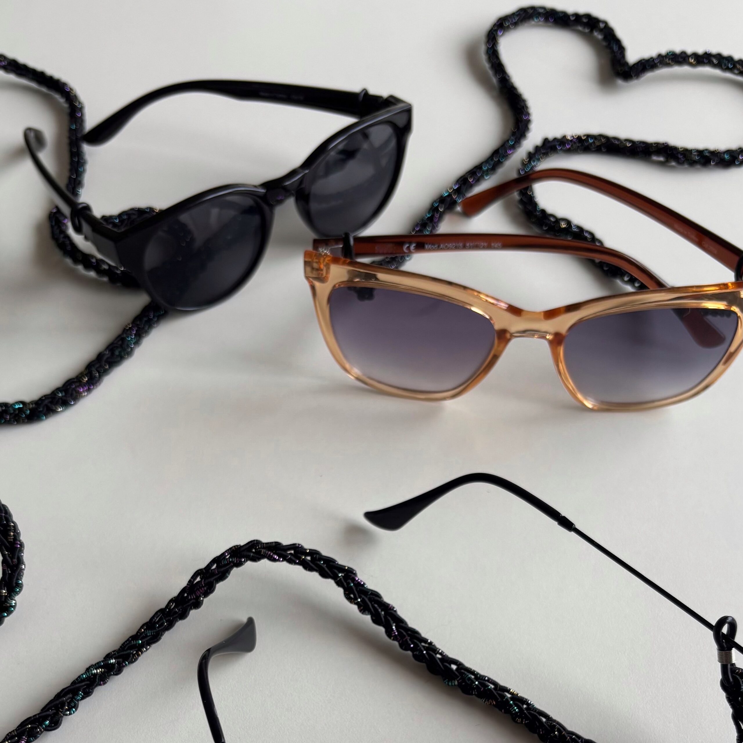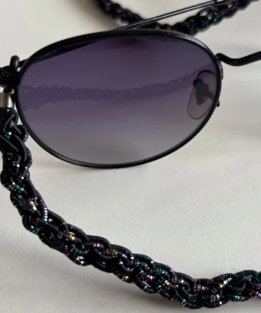 Siyah zemin üzerinde dans eden renkli ışıltılarla örülmüş Sparkly eyeglass chain, hem şık hem de enerjik bir görünüm sunar. Gözlüğünü taşırken, ona karakter, sana ise özgün bir dokunuş katar. Günlük kullanımda, işte, tatilde ya da şehirde gezerken tarzını ince bir parıltıyla tamamlamak istersen tam sana göre.