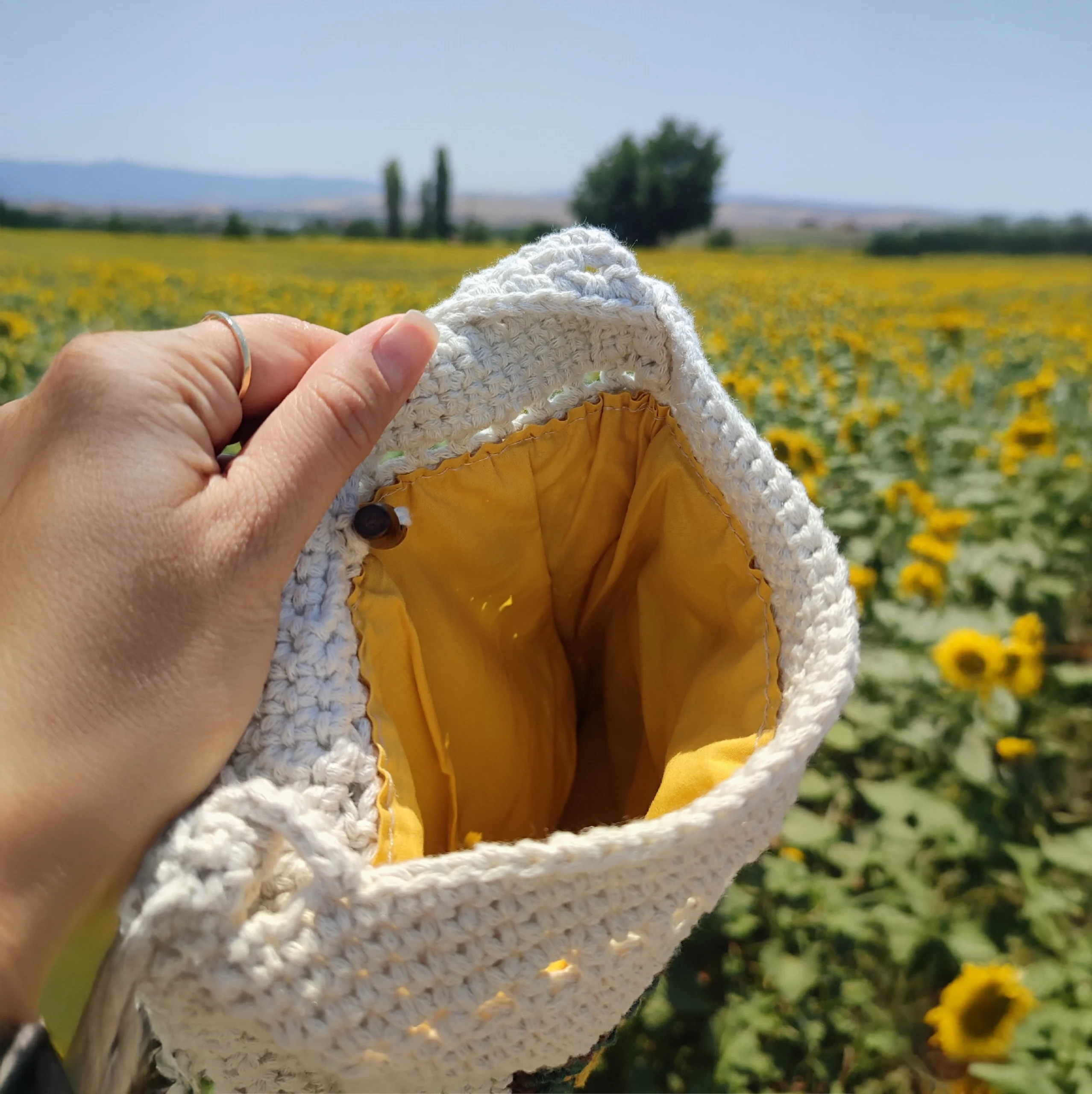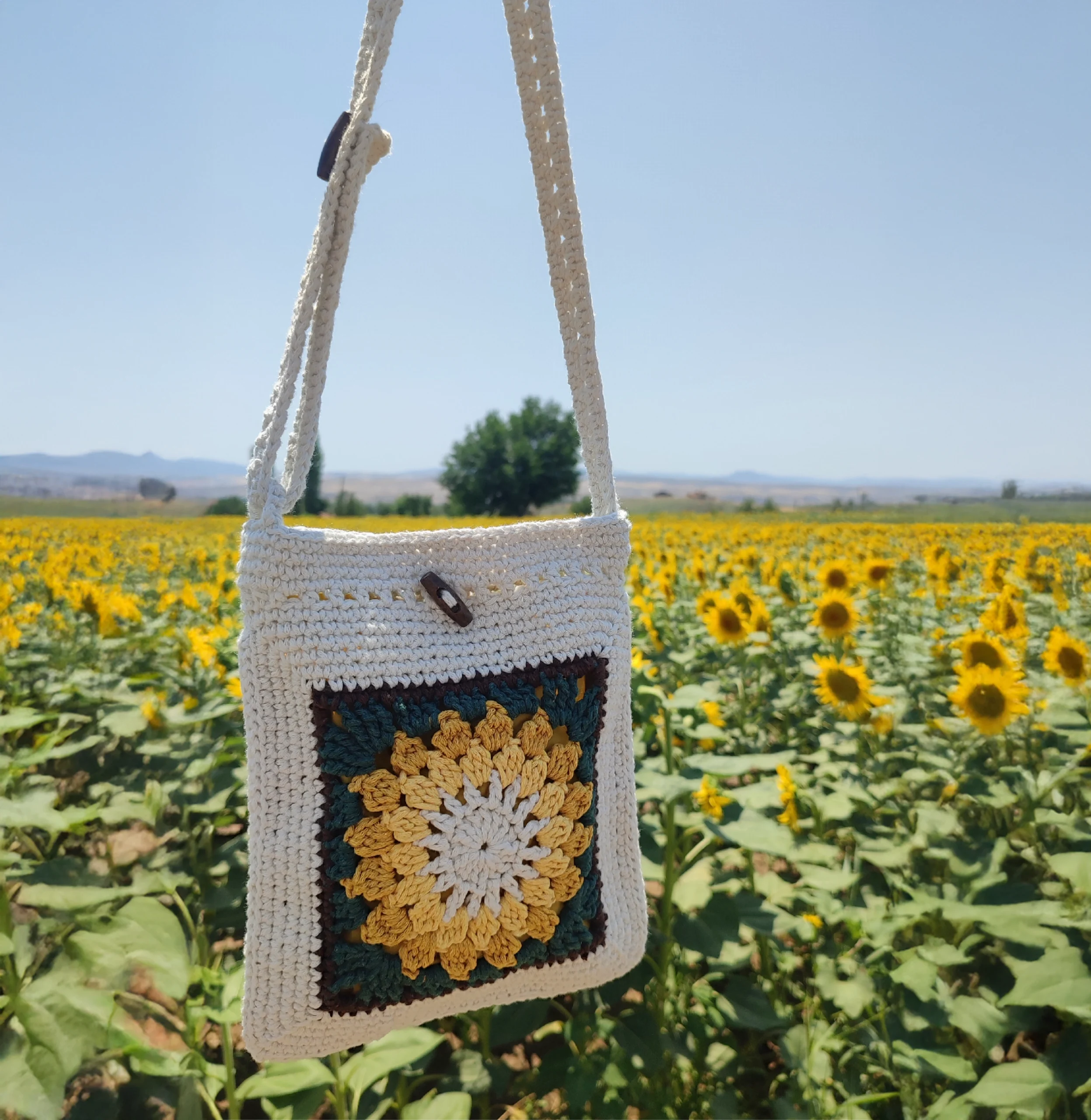 Güneşin sıcaklığı ve doğanın enerjisini stilinize taşıyacak Sunflower – Crochet Bag, tamamen el örgüsü tığ işi teknikleriyle özenle hazırlanmıştır. Yumuşak ve kaliteli ipliklerden örülen bu uzun askılı çanta, düğme ile kolayca ayarlanabilen askı boyutu sayesinde size tam kullanım rahatlığı sağlar. İster omuzda ister çapraz olarak, boyunu kolayca değiştirebilir, günün her anına uyum sağlayabilirsiniz.
