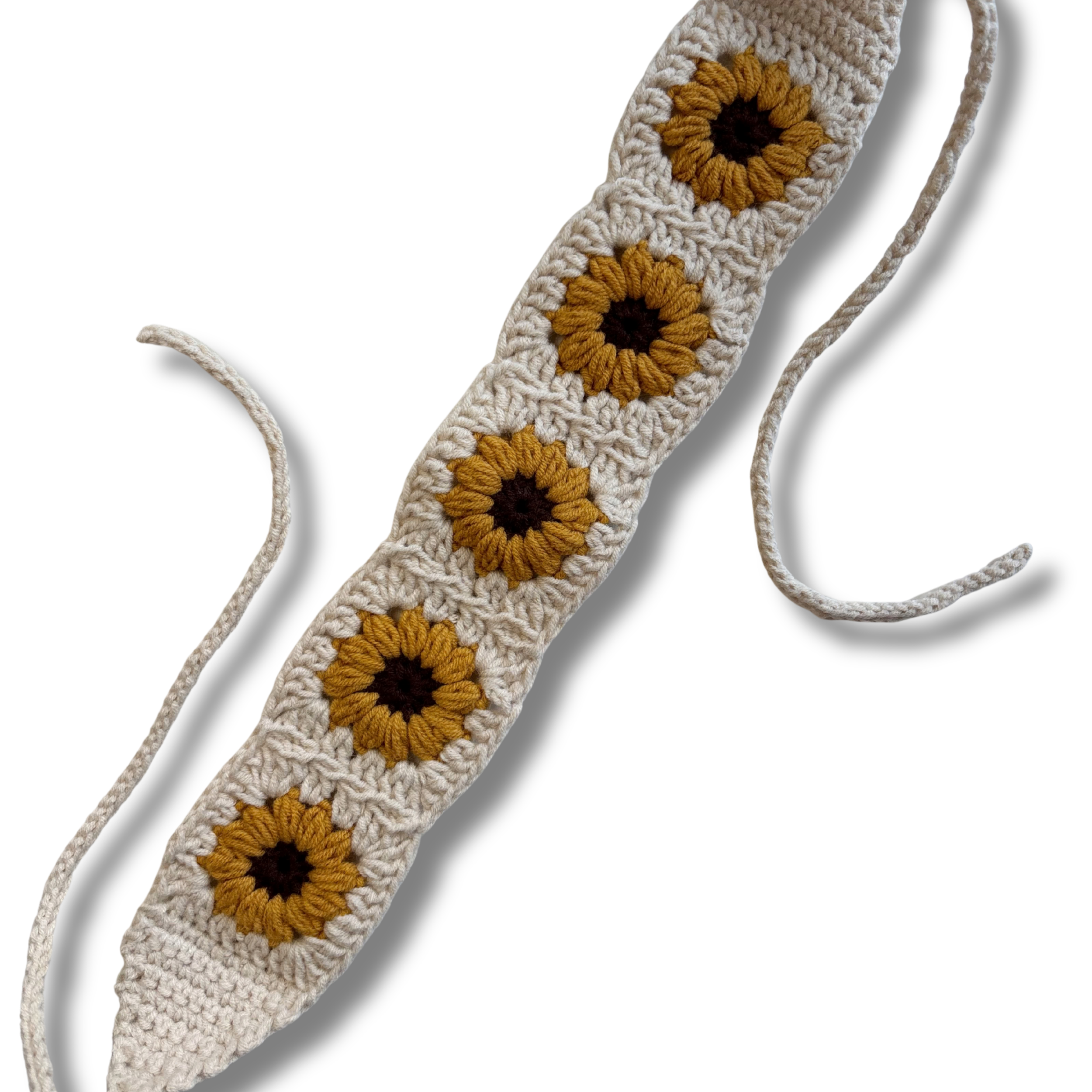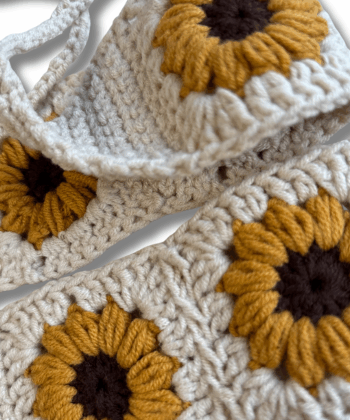 El örgüsü tekniğiyle hazırlanan Sunflower Soul Bandana, çiçeklerin neşesini ve yazın hafif enerjisini stiline taşımak için tasarlandı. Krem zemin üzerine işlenen çiçek motifleri, doğanın sıcaklığını ve ışığa yönelmenin sembolünü temsil eder.